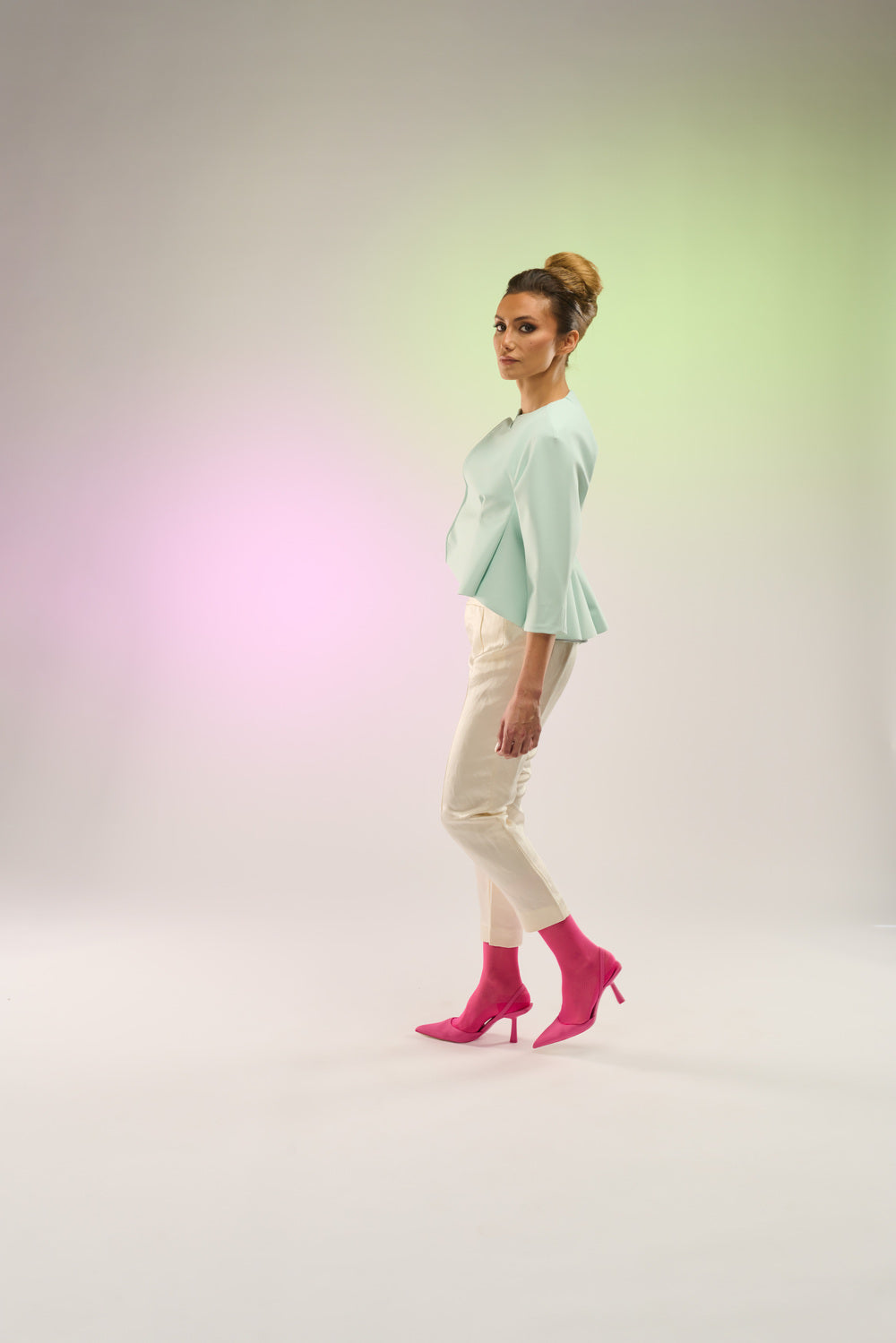 Acetate Leatherette Jacket in Mint Green. Size 38 / S